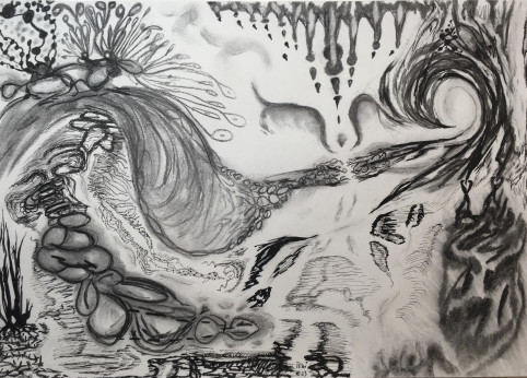 50 x 70 cm Papier, Acryl, Tusche, Kohle